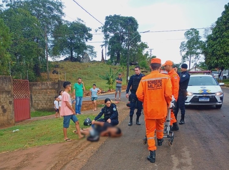 Jaru: homem empina moto, foge da polícia e causa acidente com mãe e filho
