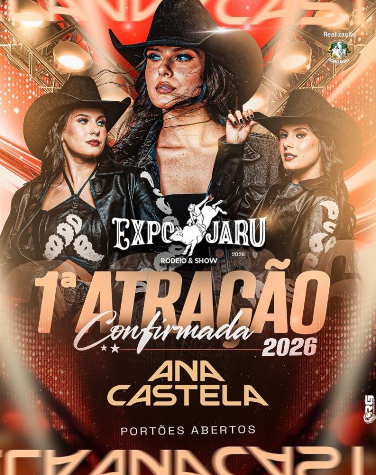 Com sucessos que conquistaram o Brasil, Ana Castela promete levar ao palco da ExpoJaru 2026 um show marcante, unindo talento, carisma e hits que embalam multidões. A organização destacou que essa é apenas a primeira de várias atrações que serão divulgadas ao longo dos próximos meses.