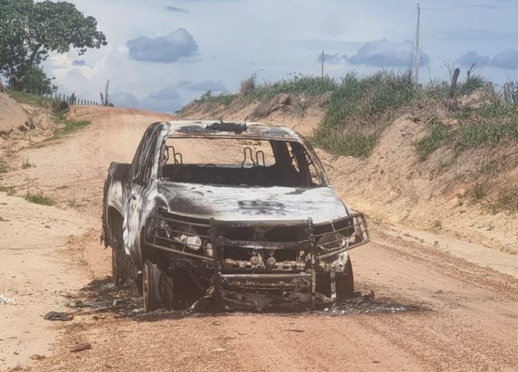 Caminhonete de empresa de segurança é incendiada em ataque armado na zona rural de Machadinho D’Oeste