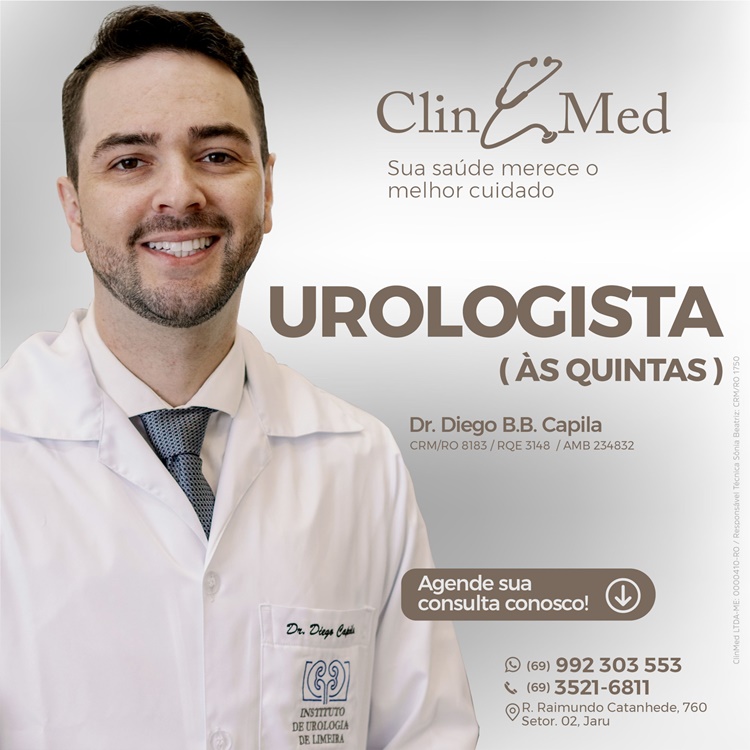 A Clin Med, pensando no bem estar dos seus pacientes, está trazendo para Jaru diversos médicos especialistas em diversas áreas da saúde e informa que o Urologista Dr. Diego Capila, estará atendendo os pacientes que necessitem de tratamento ou cirurgia para doenças dos rins, próstata e bexiga, infecções urinárias, cálculos renais, disfunção erétil, ejaculação precoce, […]