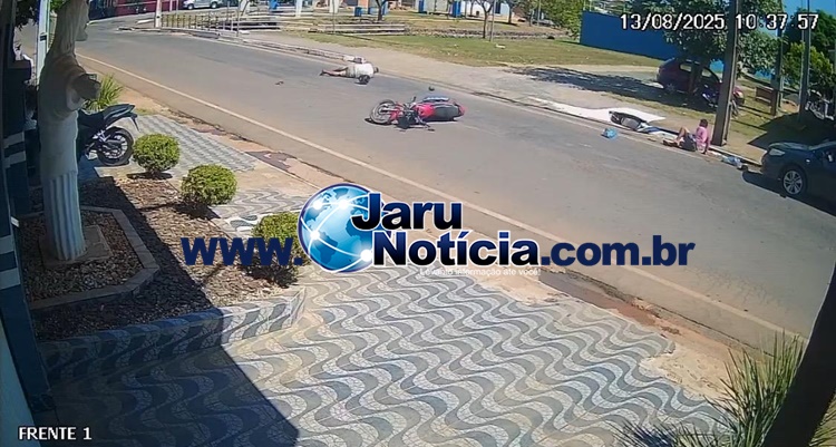 Jaru: Imagem revela dinâmica do acidente entre motociclista e pedestre próximo a Praça da Baixada