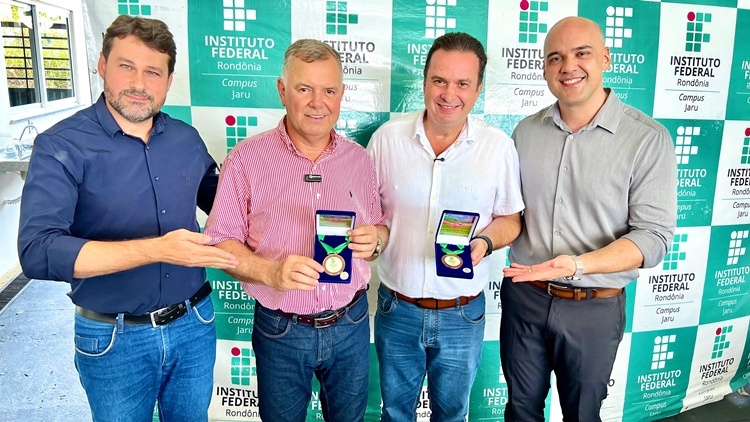 Durante a cerimônia, o deputado Mosquini recebeu a Medalha de Reconhecimento do IFRO, sendo o primeiro homenageado em Jaru com essa comenda pelos relevantes serviços prestados à instituição.