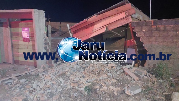 Fiat Strada colide contra o muro de obra na rua Jorge Teixeira, no Setor 7, em Jaru (RO)