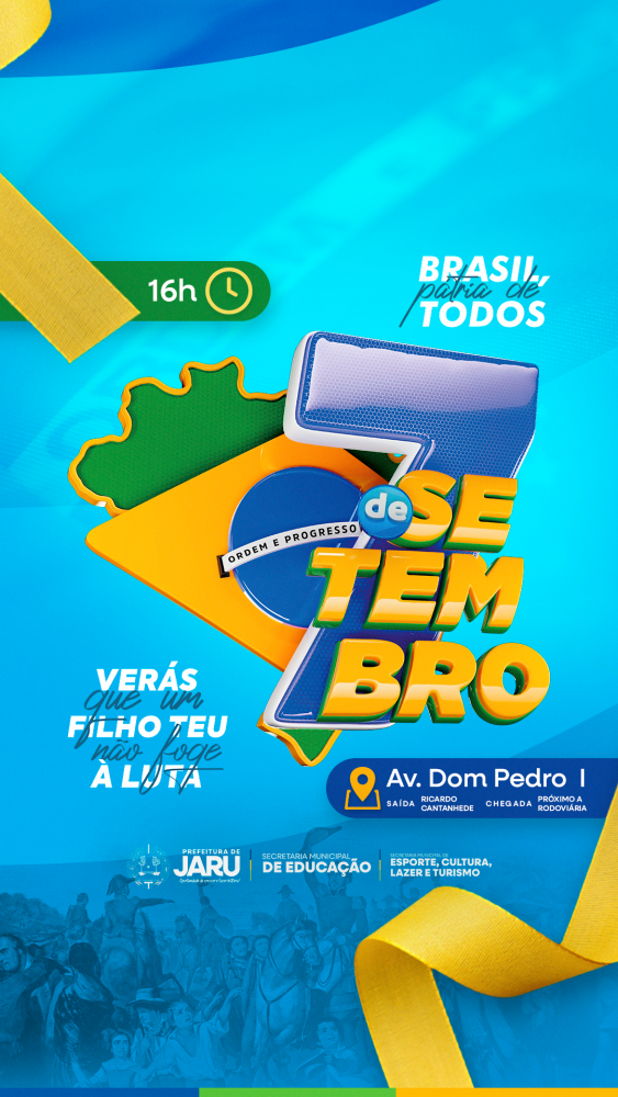 A Prefeitura de Jaru, por meio da Secretaria Municipal de Educação – Semed, e da Secretaria Municipal de Esporte, Cultura, Lazer e Turismo – Semecelt, promove neste domingo, 07, a partir das 16h, o desfile cívico em celebração à Independência do Brasil.