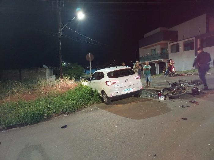 De acordo com informações colhidas no local, a motocicleta seguia pela Rua Pará em direção ao Setor 03, enquanto o carro trafegava na mesma via, porém no sentido oposto, em direção ao bairro Dom Pedro.