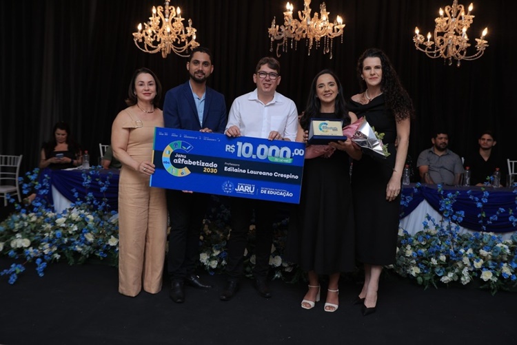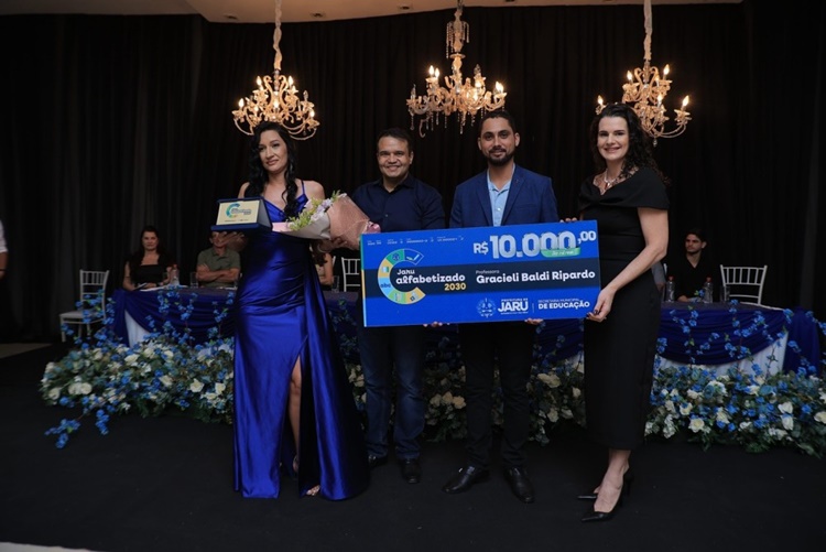 Na última sexta-feira, 29, a Prefeitura de Jaru entregou o prêmio Jaru Alfabetizado 2030 a duas professoras da rede municipal de ensino. As docentes Gracieli Baldi Ripardo, que atua no 2º A – turno matutino da EMEIEF Beatriz Mireya, e Edilaine Laureano Crespino, responsável por lecionar para o 2º B da EMEF Aldemir Lima, receberam R$ 10 mil como reconhecimento ao bom desempenho alcançado na avaliação do Sistema de Avaliação Educacional de Rondônia (SAERO).